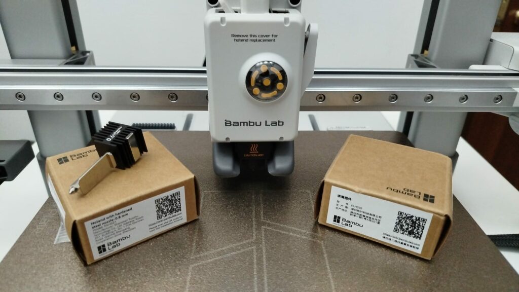 Un’altra caratteristica che dimostra la cura progettuale di Bambu Lab è la facilità di sostituzione degli ugelli di stampa (nozzle). Il sistema prevede un hotend magnetico sostituibile che consente il cambio dell’ugello in meno di dieci secondi, senza bisogno di attrezzi o complicazioni.